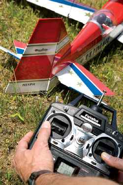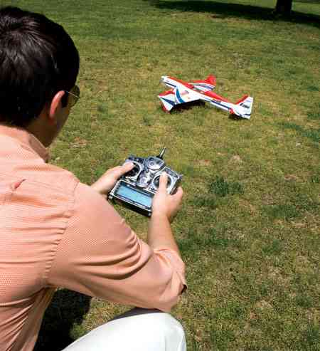 7. Check Jarak Radio .Untuk terbang perdana, atau checking secara periode, kamu harus mengecek jarak jangkauan remote. Pada radio radio tertentu pengecekan dilakukan dengan antena radio tidak ditarik, dan kontrol pesawat harus tetap bekerja pada jarak radio 50 - 100 langkah dari pesawat. Baca manual book radio anda untuk prosedur pengecekan jarak radio