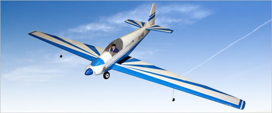 We expect the pretty Fournier RF-4D motor glider to be very popular. With a wingspan of 2 metres, it is available with either blue or red trim. Weighing in at just 1.8 Kg, a 250-300W brushless motor (not supplied) will provide ample power for getting aloft, after which you can switch the motor off and enjoy some serene thermal soaring. Or power on for some gentle aerobatics. Remember the Rothmans dual display team?